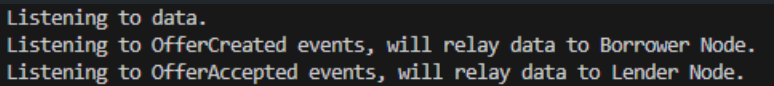f) Inicie o relayer e confirme que ele está ocioso e escutando eventos: